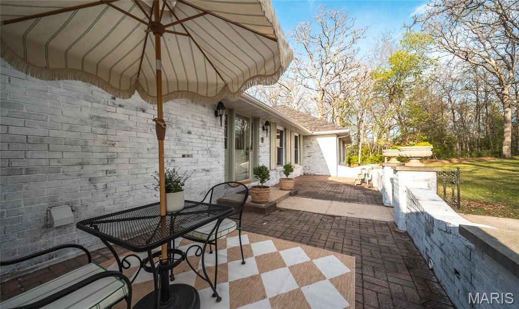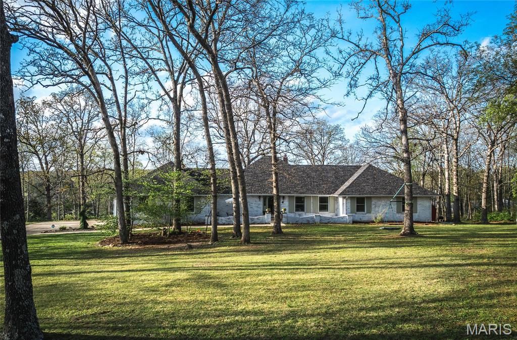 Some homes are updated. This one was reimagined.Tucked beneath a canopy of mature oaks on Meadowview Lane, this white brick ranch has been transformed with a level of craftsmanship rarely seen in Phelps County. Step through the iron entry gate into the courtyard-style front entry and something immediately feels different. This home was loved well and invested in deeply, and it shows in every room.The kitchen is extraordinary. A wall was removed, a steel beam installed, and what was created stops people in their tracks. Custom cabinetry, Taj Mahal quartzite countertops and full slab backsplash, a custom solid wood range hood, unlacquered brass hardware that will only grow more beautiful as it develops its natural patina, a farmhouse sink with a brass bridge faucet, open wood shelving, and brass pendant lighting. Just off the kitchen, the butler's pantry offers butcher block and custom cabinetry that provides the storage you actually need. This kitchen belongs in a design publication. The dining area wraps in windows on two sides, pulling in natural light all day and looking out into the mature trees. The open flow between these spaces is seamless and warm.A large covered deck extends the living space outside, made for morning coffee and summer gatherings, surrounded by native plantings including hydrangeas, dappled willows, lenten roses, coneflower, and yarrow, beautiful and low maintenance year after year.Every major system has been addressed and done right. New Owens Corning architectural roof in 2024. New HVAC inside and out in 2021. New high-efficiency heat pump water heater in 2024. Radon mitigation completed in 2025. Bathrooms updated in 2026. New Mohawk Air.O hypoallergenic carpet. New gutter screens. Fresh paint throughout. Smart home lighting. Abode security system. Both well access and Phelps County Water Supply District No. 2 connection, with an owned water softener already in place.This is the one people call about the next morning. Come see it before someone else does.