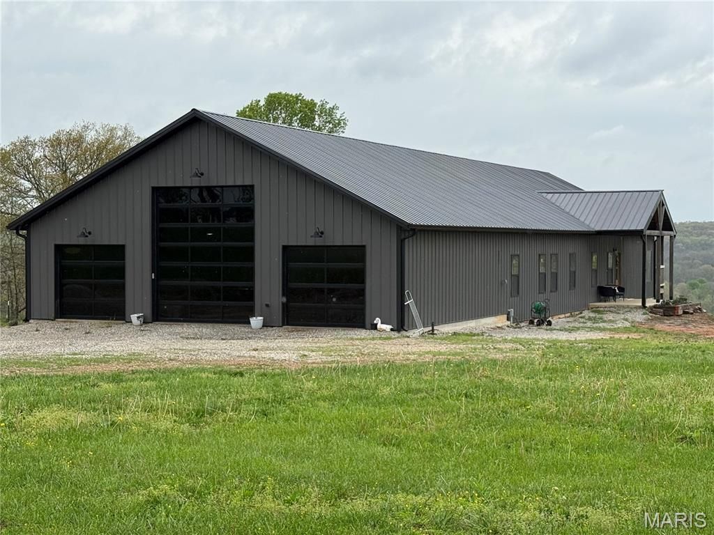 Set on 5 breathtaking acres with panoramic views that stretch for miles, this extraordinary barndominium blends luxury living with rugged charm in a truly one-of-a-kind setting. Designed with both comfort and functionality in mind, this four-bedroom, three-and-a-half-bath home showcases an expansive open floor plan, soaring spaces, and oversized bedrooms-each featuring its own walk-in closet for exceptional storage and convenience.The heart of the home is a stunning chef's kitchen, thoughtfully designed for both everyday living and entertaining, flowing seamlessly into the main living area. Just beyond, the covered back deck offers truly breathtaking, unobstructed views-an elevated vantage point where you can relax, entertain, and take in miles of rolling landscape in every direction. The covered patio below extends your outdoor living options even further.The luxurious primary suite is a true retreat, complete with a spacious walk-in closet and a spa-inspired en suite bath featuring a massive walk-in shower and a deep soaking tub-designed to deliver comfort, elegance, and a private escape that rivals high-end resorts.The 1,400+ square foot attached garage doubles as an impressive shop space, perfect for hobbies, storage, or equipment-offering versatility rarely found in homes of this caliber.Additional features include a partial basement, durable concrete floors, painted interior walls for a clean, modern finish, and a wood-burning furnace that adds both efficiency and rustic appeal.Bordering National Forest land, this property offers unmatched privacy, direct access to nature, and a lifestyle that's equal parts luxury retreat and outdoor paradise. A rare opportunity to own a high-end rural escape with refined finishes and unforgettable views.